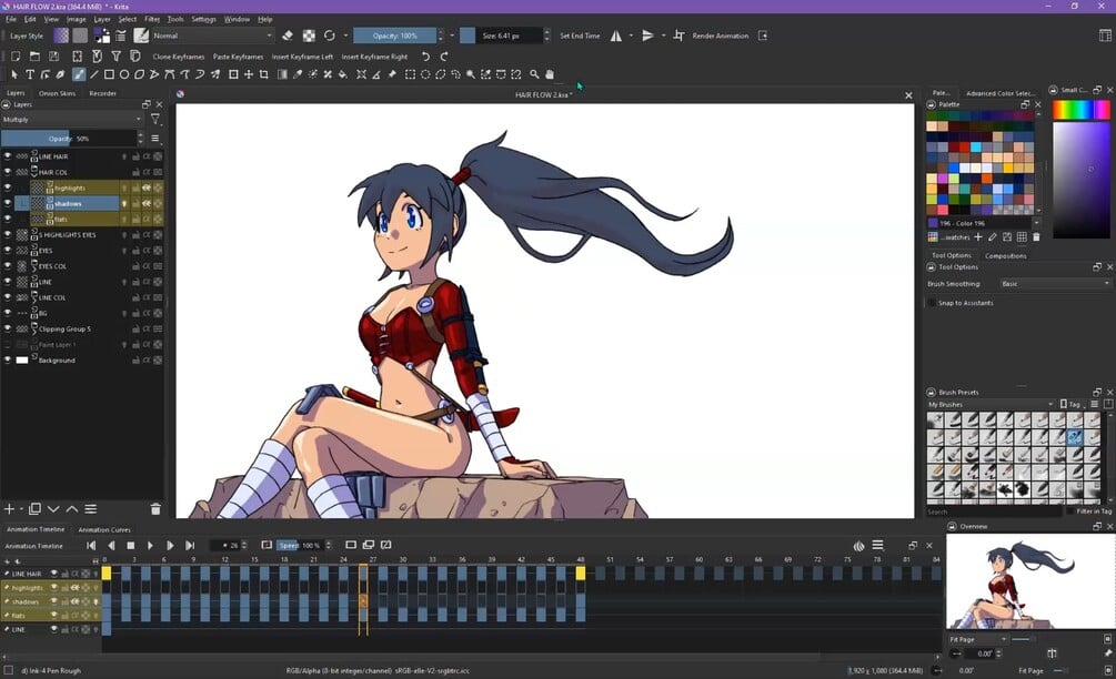 Hair Animation In Krita - 2D Frame By Frame (streaming only)